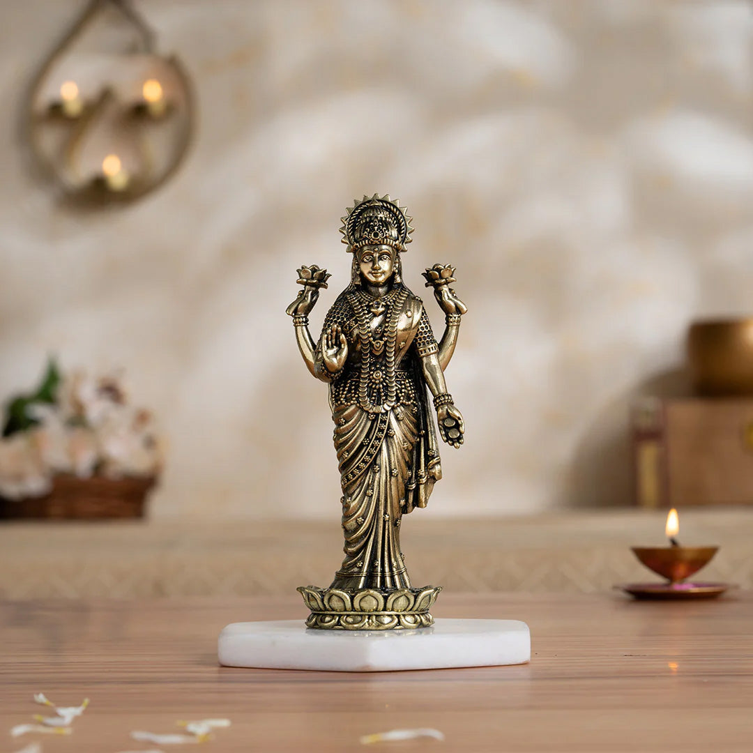 Brass Lakshmi Idol Standing on Lotus (6 Inch)