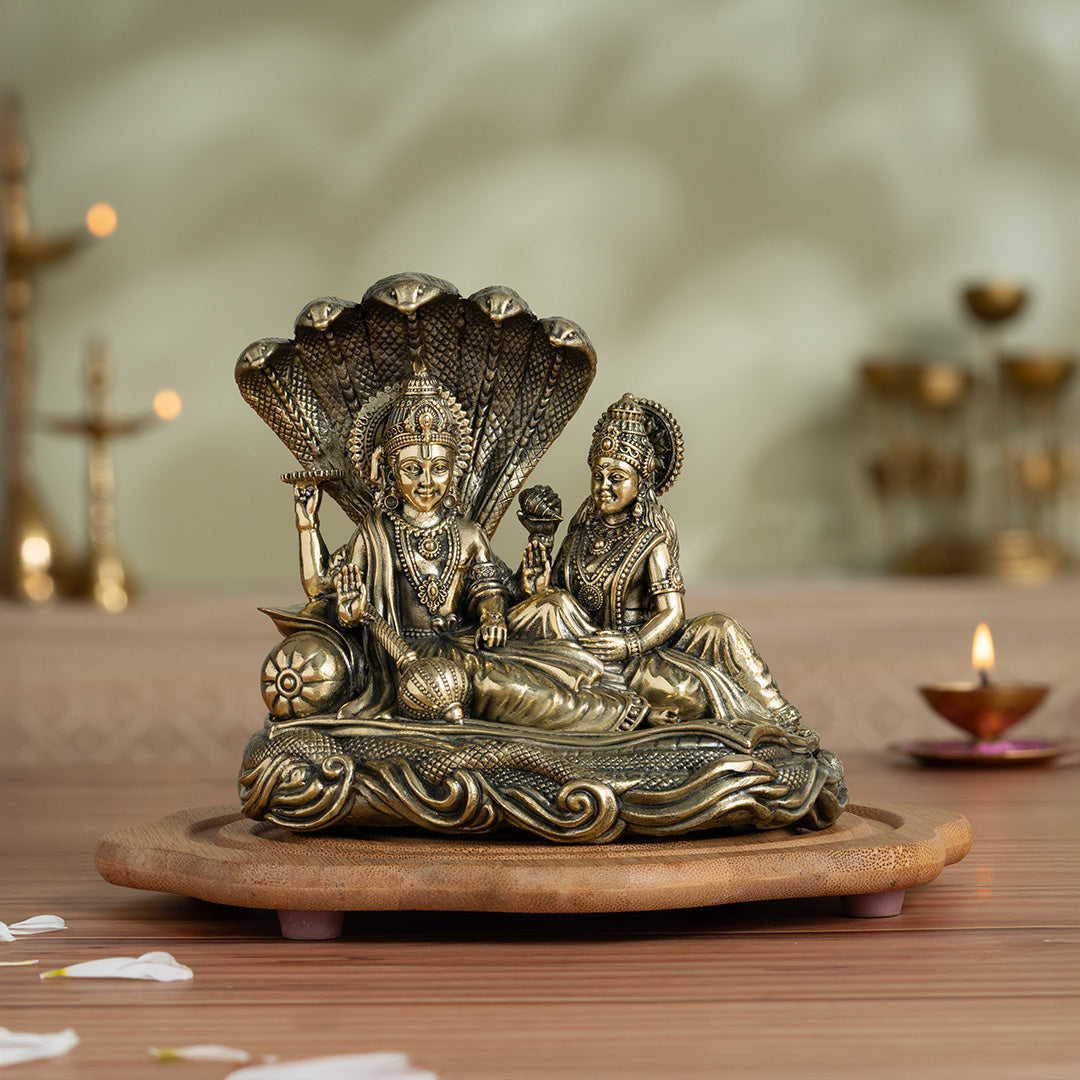 Brass Narayana/Vishnu Lakshmi on Ananta-Sajya (5.5 Inch)