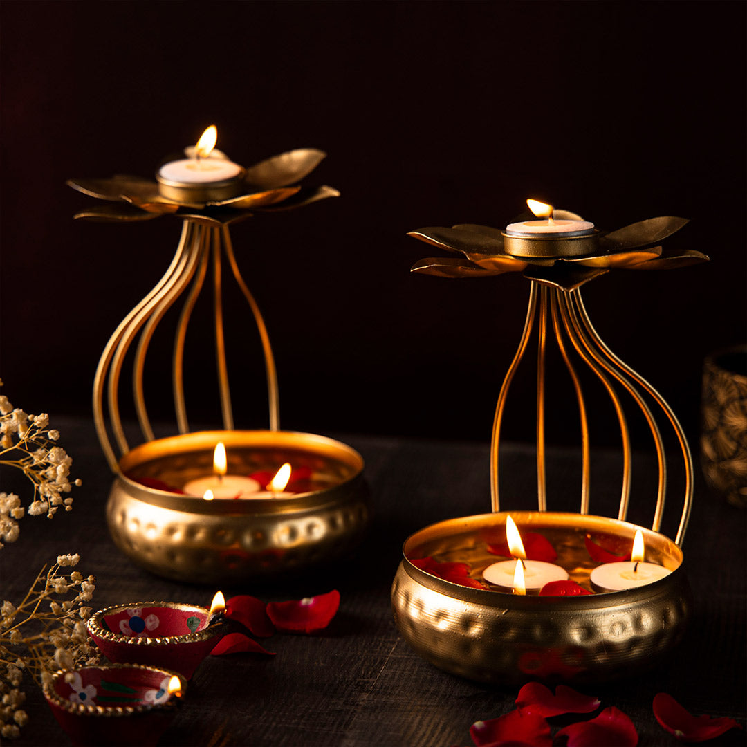 Urli Bowl with Flower Candle Holder (Set of 2)