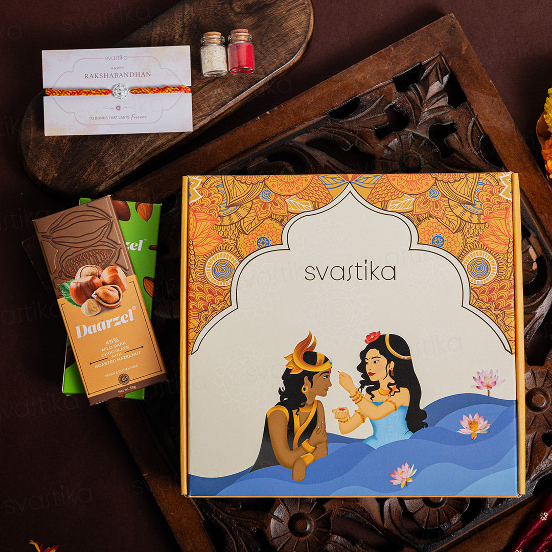 925 Pure Silver Ganesha Rakhi Gift Hamper | Rakhi and Chocolates