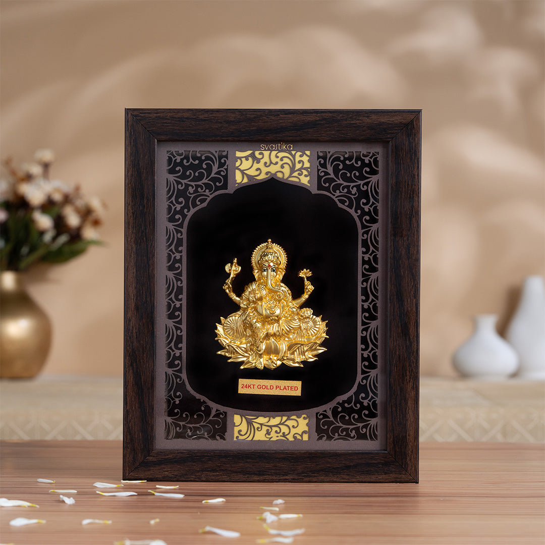 Lord Ganesha 3D Wall Hanging - Gold Plated Finish