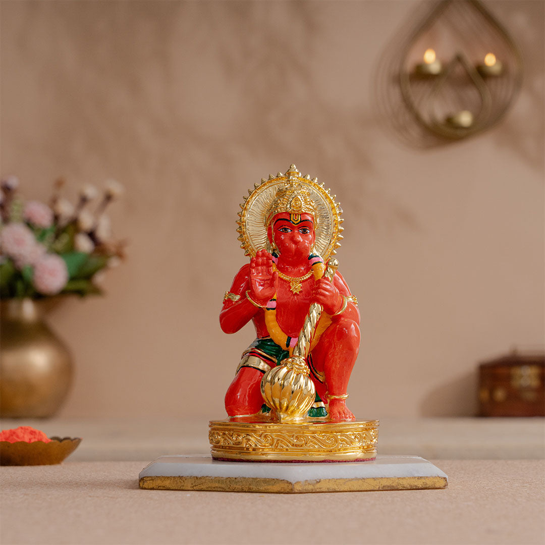 Sinduri Hanuman Murti - Gold Plated (6 Inch)