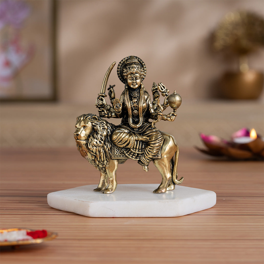 Brass 8 Armed Maa Durga Idol Sitting on Lion (4 Inch)