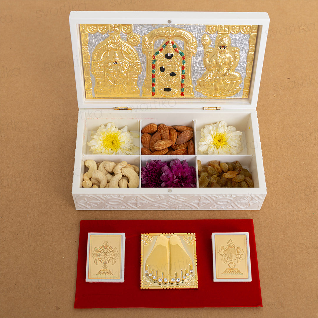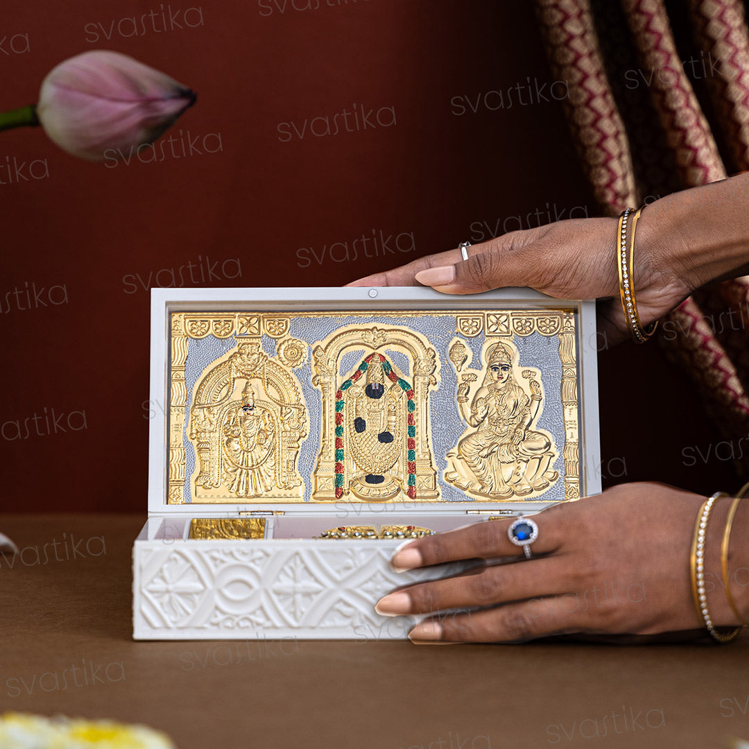 Reconnect with your spiritual roots and let this beautifully designed pooja box serve as a constant reminder of Lord Balaji's divine blessings and grace. It’s not just an item of devotion but a timeless piece of art, carefully created to resonate with your faith and aspiration