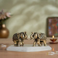Brass Vastu Trunk Up Brass Elephant Statue Pair (2 Inch)