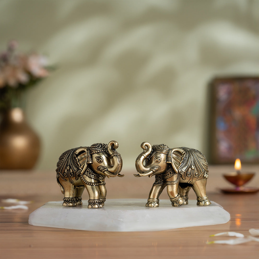 This 2" Idol Set features a pair of brass elephant statues with their trunks raised up, as per Vedic principles, to attract success and positive energy.