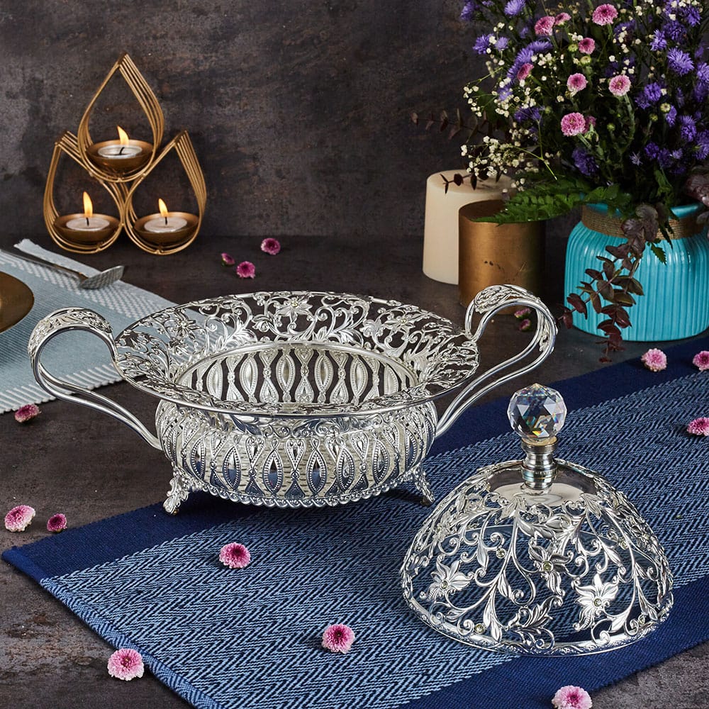 Luxury Silver Bowl with Lid - German Silver (8.5 Inches)