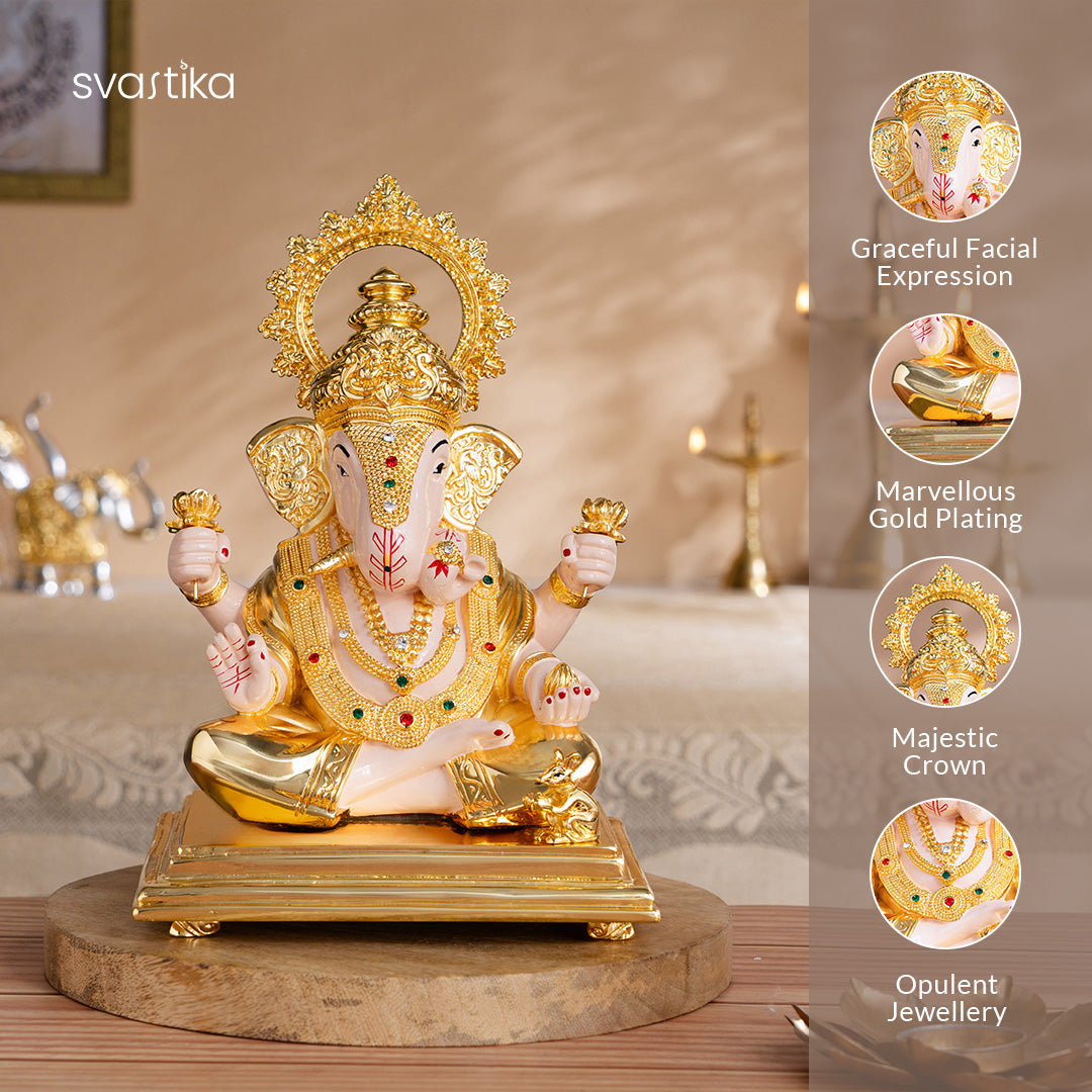 The combo is beautifully anchored by the presence of the Gold-Plated Dagdusheth Ganpati, inspired by the iconic Pune temple. This idol radiates strength, peace, and divine grace, blessing your home with success and positivity.