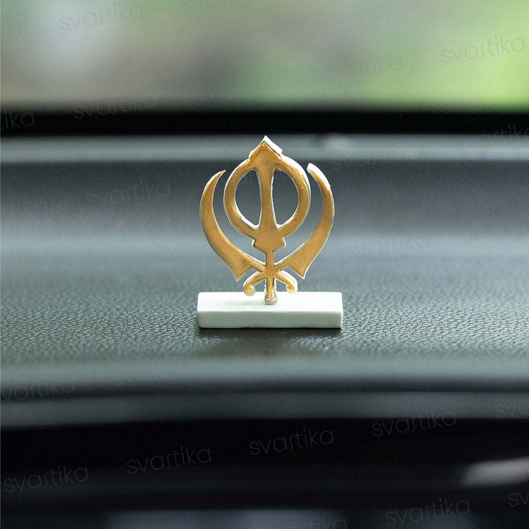 This Gold plated KHANDA is a perfect add-on for your very own car. This auspicious piece is perfect and a great idea for gifting your loved and dear ones. Khanda, the Sikh symbol, is made up of two swords, a symbol of fighting for what is right. Between them is a circle, depicting that God is one—without beginning or end.