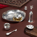 Lotus Leaf Pooja Thali Set - Silver Plated (10 Inch)