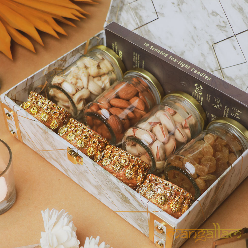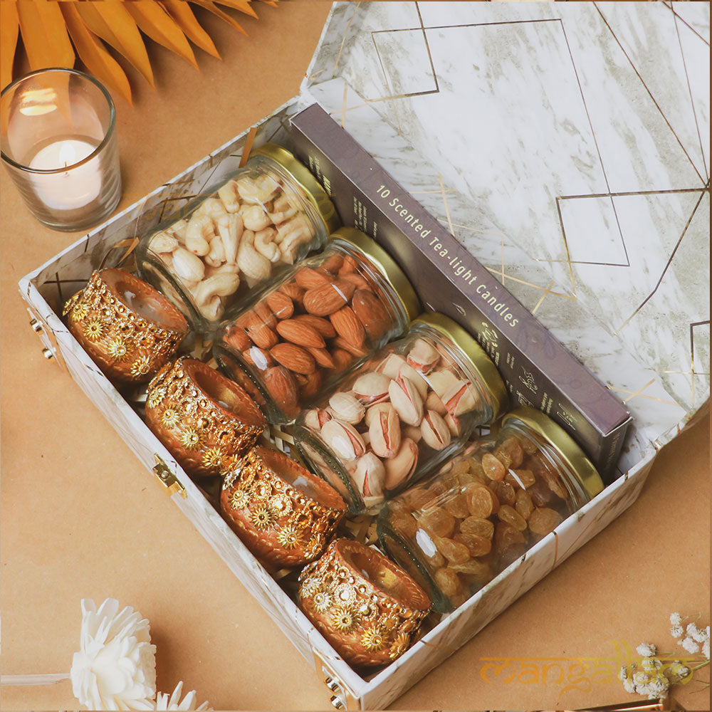 Luxury Dry Fruit, Soy Wax Scented Tea-lights & Handmade Diya Set