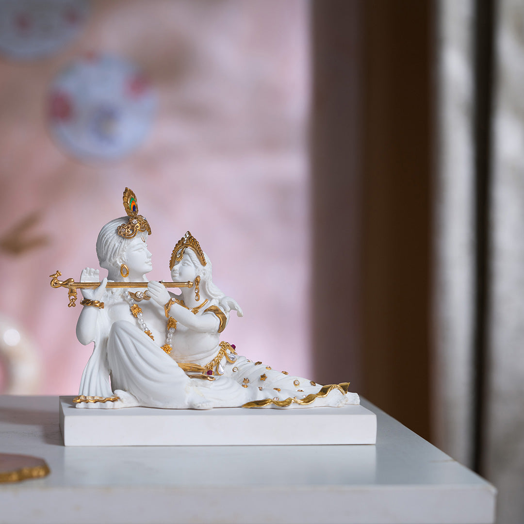 Luxurious White & Gold Sitting Radha Krishna Murti (6 Inch)