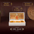 Celebrate the teachings and divine grace of Sai Baba with this beautifully designed pocket temple. Crafted from premium wood, this sacred box is adorned with 24 Karat Gold foil, highlighting the symbolic imagery and adding an aura of elegance to your spiritual practices. The imagery on the lid pays homage to Sai Baba's holy abode in Shirdi, making it a meaningful way to bring his blessings into your life.