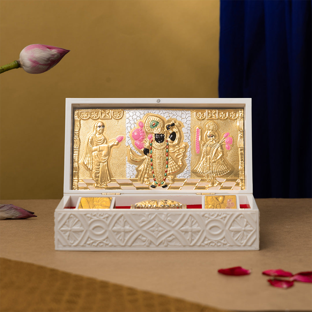 Bring home the Shreenathji Pocket Temple to infuse your life with spiritual fulfillment, financial abundance, and divine grace. Let his blessings guide you toward success and eternal happiness.